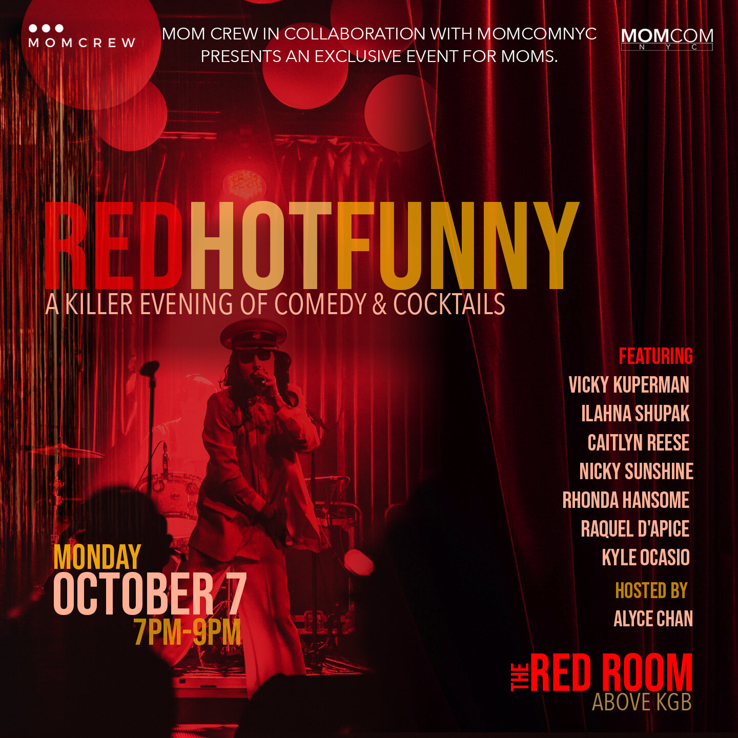 Join Mom Crew and MomComNYC for an intimate speakeasy soirée with hilarious stand-up performances by some of the top female and mom comedians of NYC.